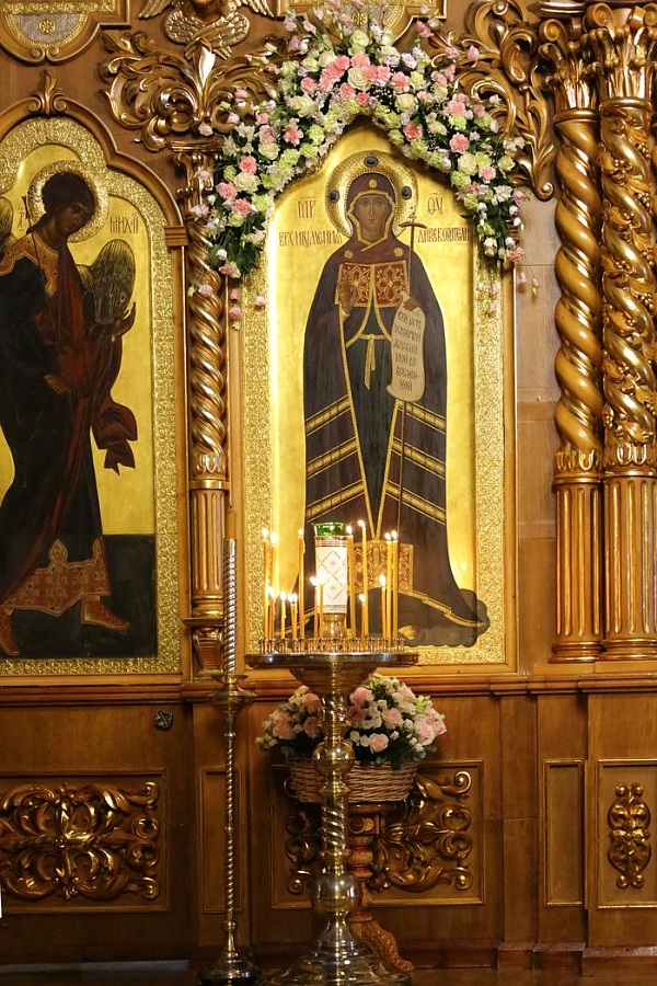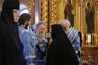 Сам праздничный день был отмечен в Дивеевской обители тремя Божественными литургиями, общим причащением сестер и чином о Панагии.