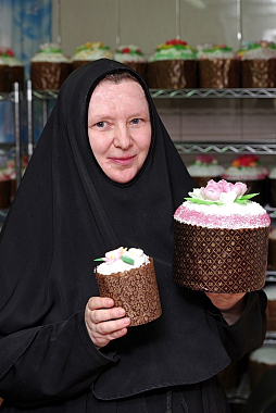 Украшают пасхальную выпечку не только сестры монастыря, но и трудницы. Это послушание творческое и радостное; те, кто участвуют в нем, уже сейчас предвкушают радость Светлого Христова Воскресения.