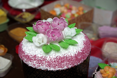 За многие годы уже сложились определенные традиции, но у каждой сестры все же есть свобода в выборе украшений для куличей: пищевых цветов, декоративных фигурок, пищевых красок, кондитерских посыпок, красочного бисера и их цветовой гаммы.