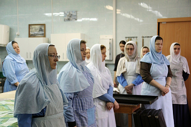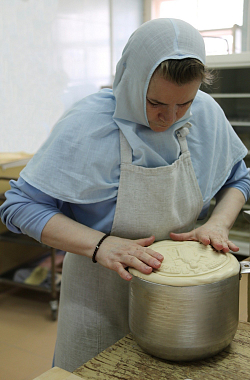 Выпечка артоса началась с молебна на начало благого дела. Молебен в монастырской просфорне совершил клирик Серафимо-Дивеевского монастыря иерей Олег Зырянов, на нем молились монастырские сестры-просфорницы, которые будут печь артосы, и сестры-пекари, которым предстоит изготовить пасхальные куличи.