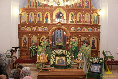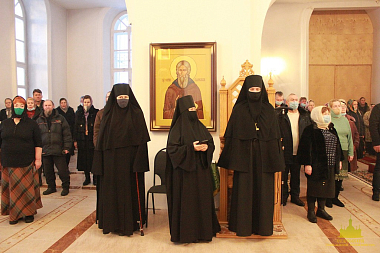По окончании Литургии было совершено славление с чтением молитвы святому преподобному Иоанну, затворнику Сезеновскому, а затем провозглашено традиционное многолетие.