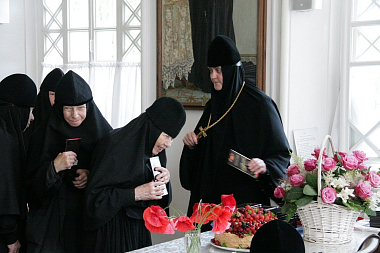 По окончании богослужения в монастырской трапезной сестры поздравили матушку с днем игуменства и преподнесли приготовленные к этому дню подарки, пожелав Ее Высокопреподобию неоскудевающей радости о Господе, благодатного Покрова Божией Матери в настоятельских трудах.
