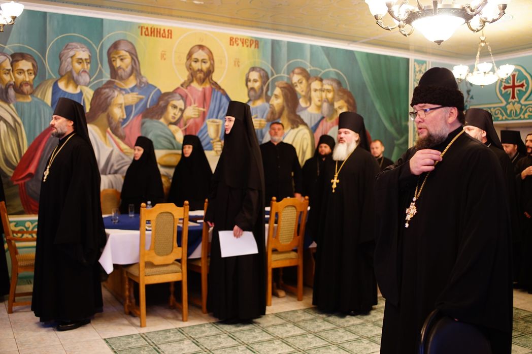 Рабочая встреча прошла в стенах Пречистенского Пантелеимонова Щегловского мужского монастыря Тулы по завершении Божественной литургии, совершенной благочинным монастырей Тульской епархии игуменом Агафангелом (Болдиным) совместно с наместником обители архимандритом Клавдианом (Ларьковым). За богослужением молились игумении епархиальных монастырей с сестрами и братией.