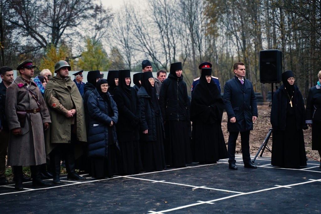 По окончании Божественной литургии в Никольском соборе обители сестры и гости монастыря во главе с епископом Тарусским Иосифом, викарием Калужской епархии направились в Андреевский скит обители, где открывался музейно-образовательный комплекс. В 9 часов утра в деревянном храме скита состоялась панихида памяти «вождей и воинов на поле брани убиенных и окрест погребенных», имена которых непрерывным потоком шли рядами титров на черном экране телевизоров.