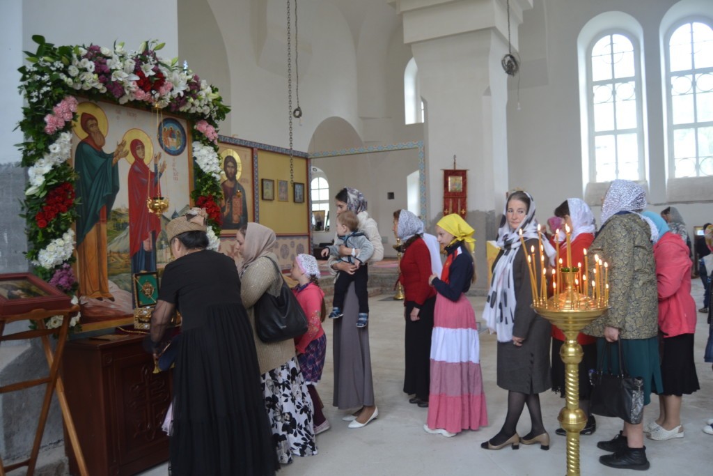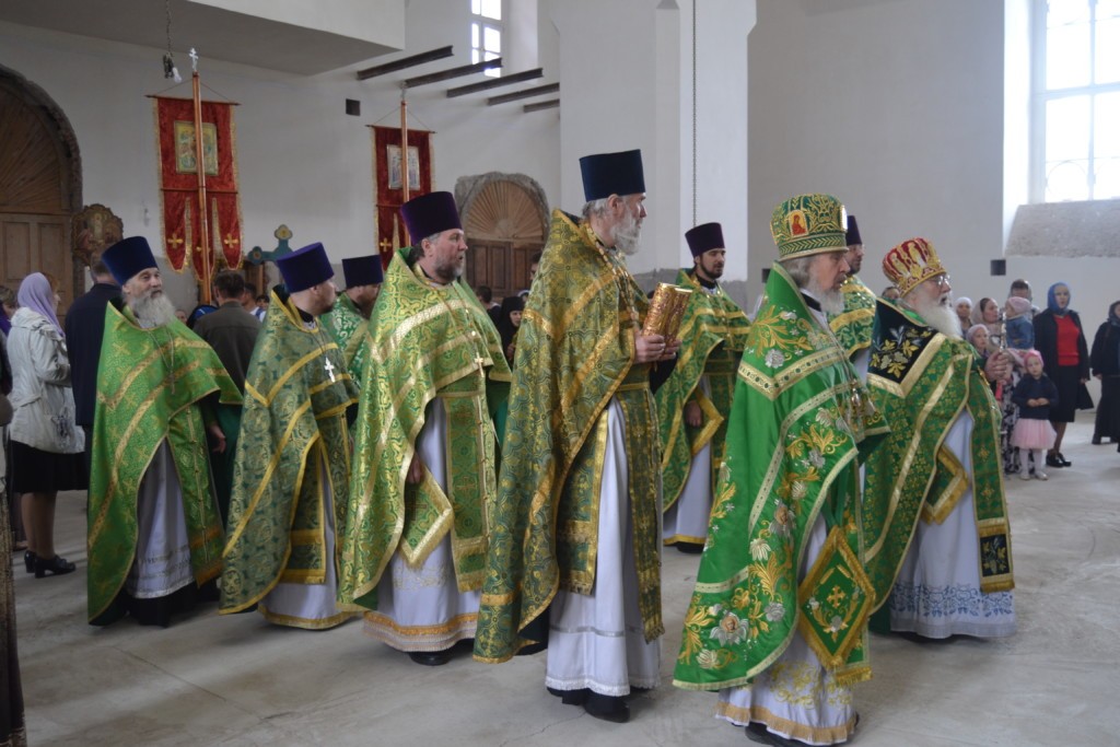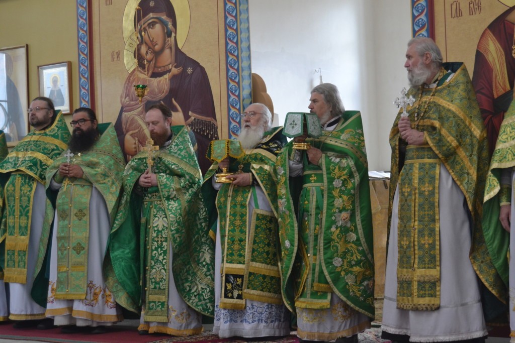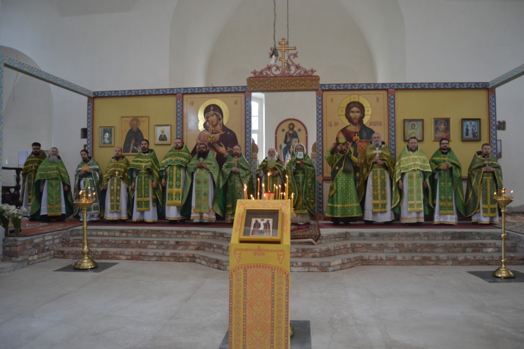 Божественную литургию совершил собор из 15-и священников во главе с духовником епархии митрофорным протоиереем Георгием Потеевым и благочинным Центрального церковного округа митрофорным протоиереем Геннадием Ведерниковым. В этот день служить в алтаре собрались, в основном, многодетные отцы. Среди молящихся в храме присутствовали их матушки и многочисленные дети. Большим праздником является этот день и для прихожан монастыря, в том числе детей и родителей воскресной школы «Светочъ», небесными покровителями которой являются князья Петр и Феврония.