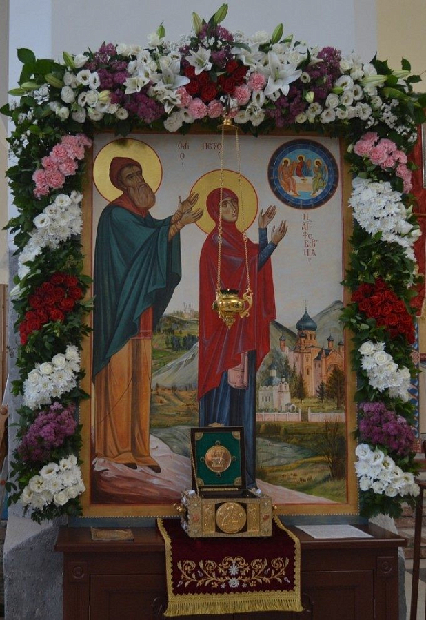 По окончании богослужения состоялся крестный ход вокруг обители с ковчегом с мощами святых Петра и Февронии, после которого митрофорный протоиерей Георгий Потеев рассказал собравшимся в храме о трудной, но честной жизни святых Петра и Февронии и пожелал всем добра, любви, благ от Господа. Он напомнил слова апостола Павла о семье: «Мужья, любите своих жен, как и Христос возлюбил Церковь и предал Себя за нее» (Еф. 5, 25).