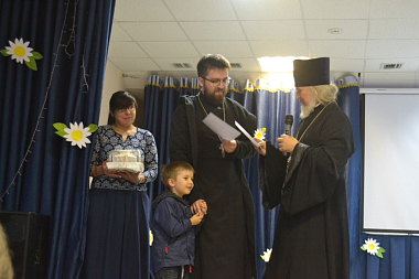 По благословиению епископа Нижнетагильского и Невьянского Евгения 16-ти многодетным семьям священнослужителей, в которых воспитываются 42 ребенка, были вручены подарки: сертификаты на приобретение канцелярских принадлежностей и торты. Самой многодетной семье епархии иерея Константина и матушки Надежды Столовых, у которых 10 детей, также вручили сертификат на электрогазовую плиту, важную бытовую вещь в такой многодетной семье.