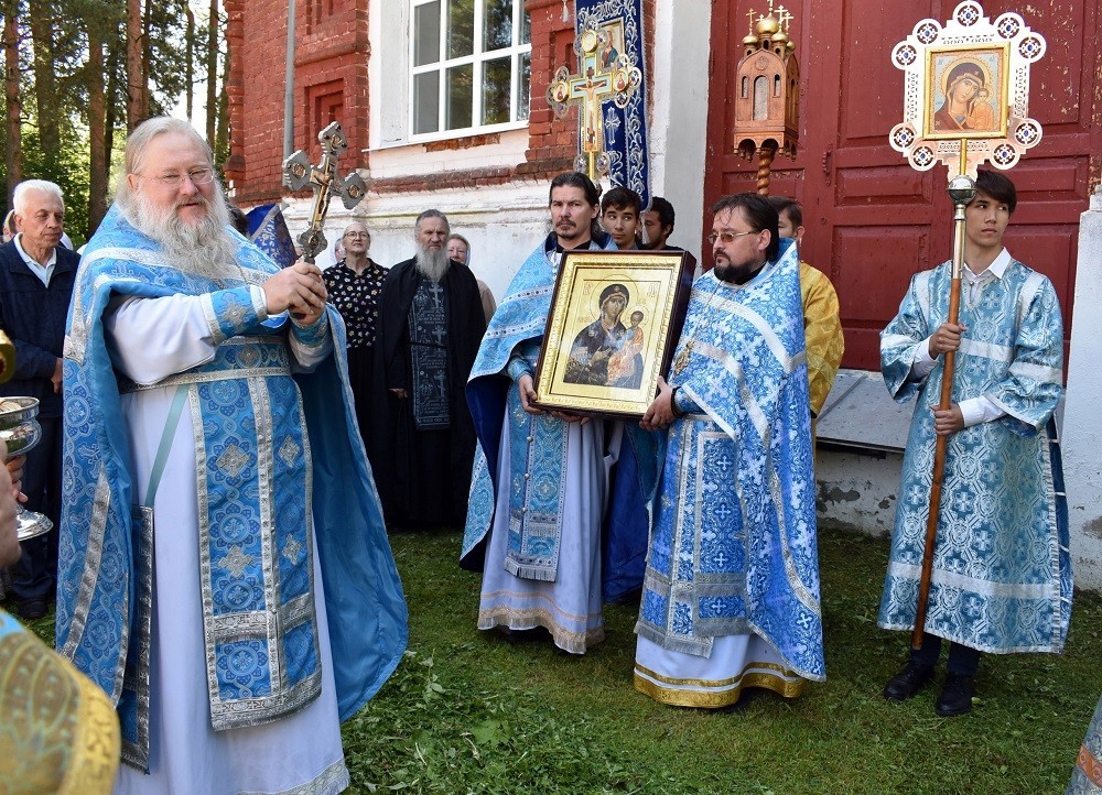 По окончании Литургии вокруг собора был совершен крестный ход. У чтимого празднуемого образа была прочитана молитва и пропето величание празднику.