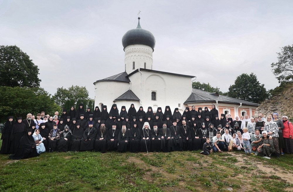 За богослужением молились настоятельница Снетогорской обители игумения Рафаила (Позигунова) с сестрами, настоятельница Свято-Троицкого Творожковского монастыря игумения Магдалина (Бусыгина) с сестрами, настоятельница Спасо-Елеазаровского монастыря монахиня Мария (Корх) с сестрами, многочисленные прихожане и паломники.