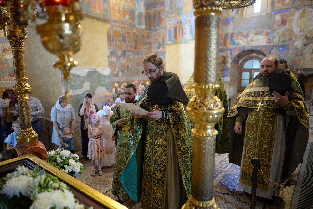 По запричастном стихе иеромонах Иларион произнес проповедь о преподобном Евфимии, его крепкой вере, помощи ближним и заботе о городе Суздале.
