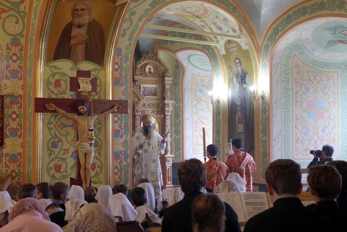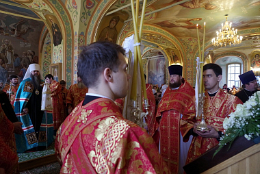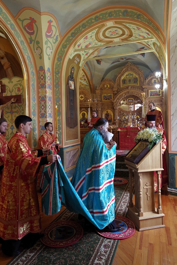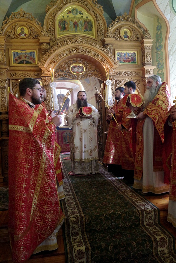 В новоосвященном храме глава Нижегородской митрополии совершил Божественную литургию. Митрополиту Георгию сослужили исполняющий обязанности наместника обители архимандрит Тихон (Затёкин), благочинный г. Арзамаса иерей Илия Трушкин, благочинный Арзамасского района протоиерей Игорь Медведев, настоятель нижегородского соборного храма во имя Пресвятой Живоначальной Троицы митрофорный протоиерей Сергий Шалатонов, игумен Вассиан (Бирагов), игумен Феодосий (Какуркин), иеромонах Тимофей (Друца) и другие клирики епархии.