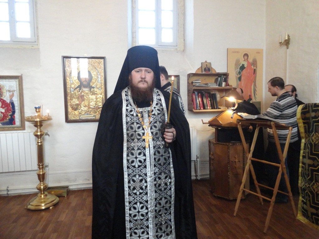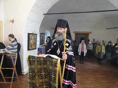Его Преосвященству сослужили наместник обители иеромонах Арсений (Девятериков) и насельник монастыря иеромонах Евангел (Ещенко).