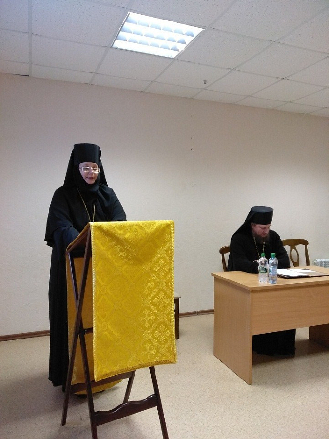 Завершила череду выступлений настоятельница Свято-Благовещенского женского монастыря Вязников игумения Серафима (Старых) докладом «Подвиг в жизни монаха (борьба со страстями – война в мирных условиях». Основываясь на святоотеческом наследии, игумения Серафима раскрыла понятия греха и страсти, привела классификацию страстей, выделила наиболее опасные и трудные в уврачевании.
