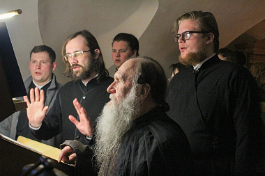 Церковные песнопения исполнил мужской хор под руководством студента семинарии чтеца Артемия Коровина.
