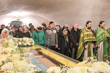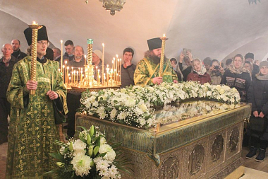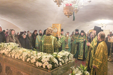 По окончании богослужения было совершено славление перед ракой с мощами преподобного Димитрия Прилуцкого.