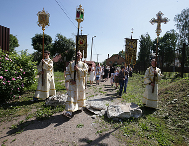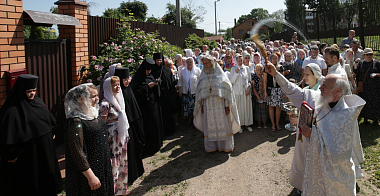 По окончании Литургии молящиеся прошли вокруг обители крестным ходом, во время которого был отслужен молебен.