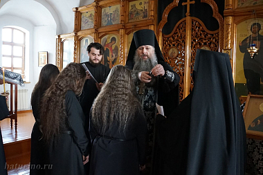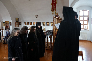 Священник пожелал, чтобы каждая из сестер очистила свое сердце и смогла стяжать внутреннюю сильную молитву, чтобы отражать нападки врага. «Ведь сатана хочет обезоружить нас, вывести из монастыря, заманить в мир. Если инокиня будет слушаться игумению, открывать ей свои помыслы, тогда нестрашно, вражьи козни будут разрушены! Важно, чтобы новоиспеченные инокини, действительно, были мудрыми девами, которые пришли к жениху Христу, чтобы они стали истинными невестами Христовыми», – заключил священник.