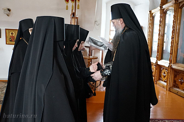 25 марта 2019 года в Сретенском женском монастыре с. Батурина Улан-Удэнской епархии состоялось важное событие – постриг трех послушниц обители в иночество. Загороднева Татьяна стала инокиней Валентиной, Тырышкина Надежда – инокиней Ниной, Дубинина Дарья – инокиней Иларией.