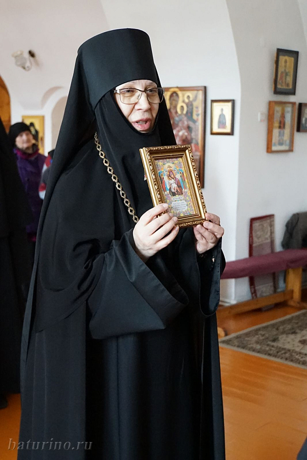 Настоятельница монастыря игумения Ника (Толмачева) также поздравила сестер и подарила им иконы Пресвятой Богородицы «Достойно есть». Матушка пожелала, чтобы они шли по пути царскому, Богородичному. «Ведь первая по нему прошла Сама Царица Небесная! Путь этот тернист, он очень непростой, но невероятно радостный, ведь результат его – спасение, Царство Небесное. Нужно трудиться над собой, над своим сердцем, очищая его, стараясь помогать сестрам. Нужно всегда помнить о том, что Господь живет только в чистом сердце».