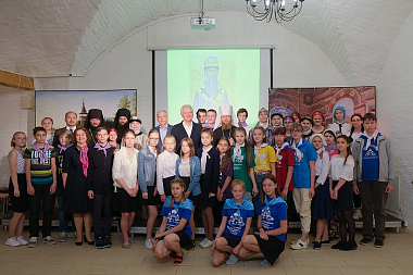 Затем гости прошли в конференц-зал нижнего яруса Введенской церкви, где их вниманию была представлена литературная композиция в исполнении воспитанников Центра «Образ» при Старицкой обители. Гостям праздника также была предложена фотовыставка, посвященная 200-летию Троицкого храма обители.