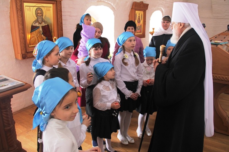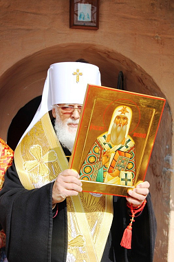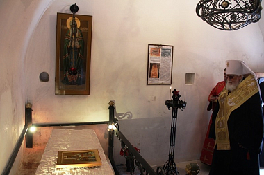 Перед началом богослужения митрополит Виктор почтил место погребения Патриарха Иова в усыпальнице монастыря.