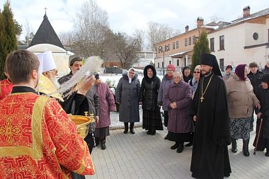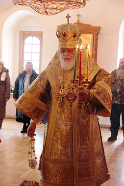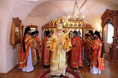 За Литургией Высокопреосвященнейшему владыке сослужили наместник монастыря игумен Димитрий (Севостьянов) с братией обители в священном сане.