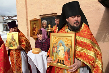 По окончании богослужения состоялся праздничный пасхальный крестный ход по территории монастыря.