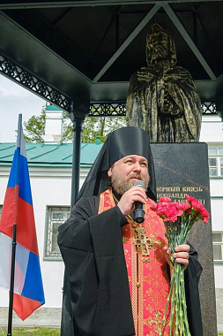 «Мы долго думали, как нам изобразить князя. И приняли решение, что в обители он должен предстать именно как монах с четками в руках. Ведь и на протяжении веков он был и остается печальником и молитвенником за землю Русскую. И благоверный князь не только покровитель государственных мужей, но и монахов», - сказал игумен Филарет.