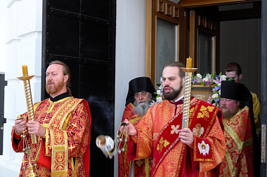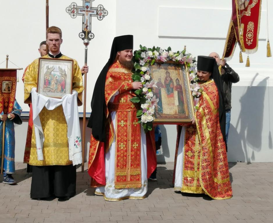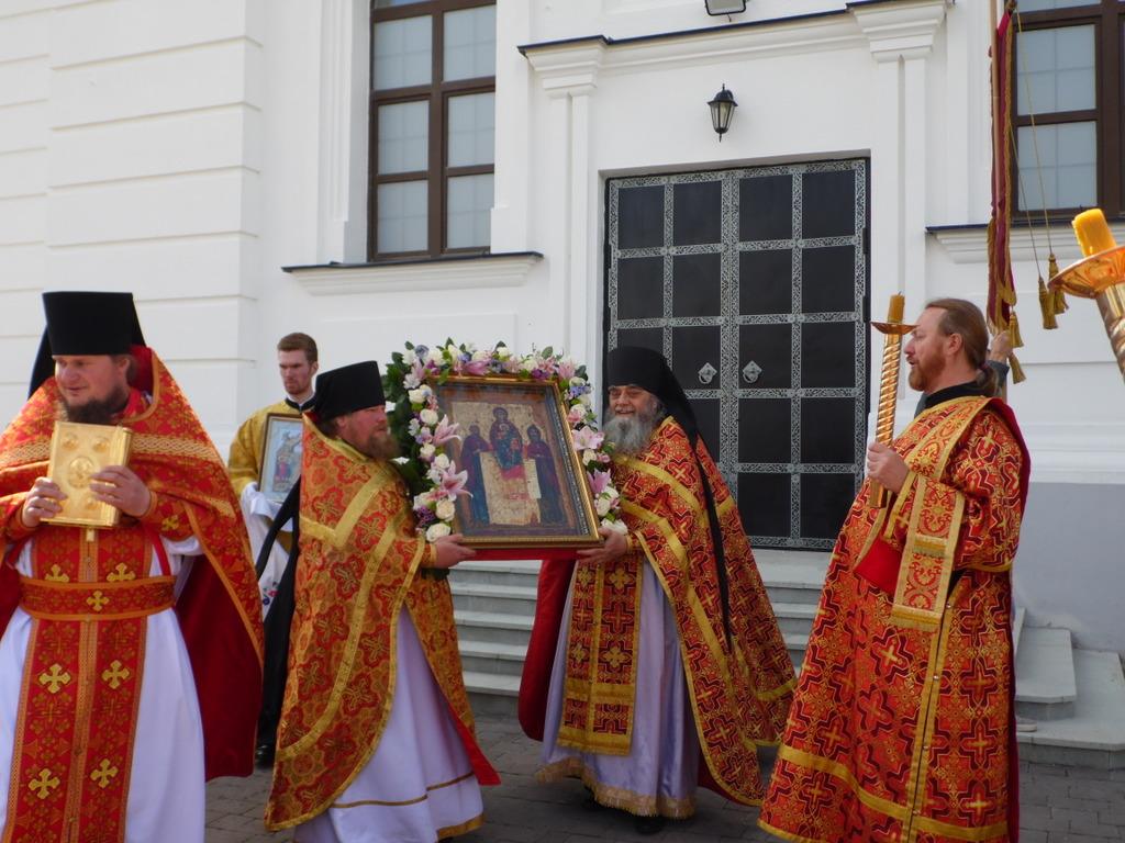 По окончании Литургии вокруг Успенского собора по территории обители был совершен праздничный крестный ход со Свенской иконой Божией Матери – точным списком чудотворного образа, хранящегося в Государственной Третьяковской галерее в Москве.