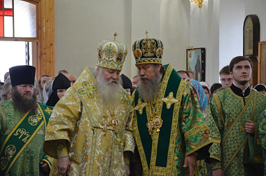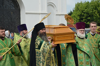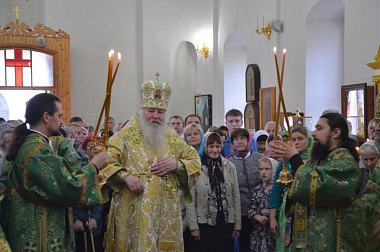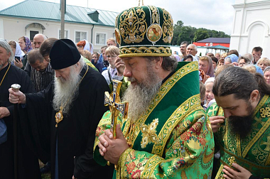 По окончании Литургии в честь престольного праздника были совершены крестный ход и славление преподобному Илариону.