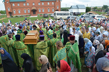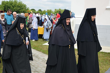 За богослужением молились настоятельница обители игумения Матрона (Брыксина) с сестрами, настоятельница Иоанно-Казанского монастыря с. Сезенова, руководитель Отдела по монастырям и монашеству Елецкой епархии игумения Феофания (Проценко), настоятельница Свято-Троицкого женского монастыря г. Лебедяни игумения Гликерия (Соболева) и настоятельница Елецкого Знаменского монастыря г. Ельца игумения Антония (Поликарова), а также многочисленные паломники, прибывшие в обитель к празднику.