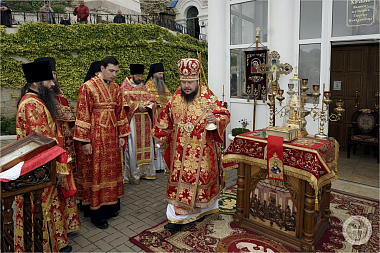 Преосвященнейшему владыке сослужил сонм духовенства из насельников монастыря в священном сане и гостей. Свято-Климентовский Инкерманский пещерный мужской монастырь был представлен благочинным обители иеромонахом Авелем (Василенко) и иеромонахом Андреем (Даниловым).
