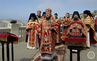 Праздничное богослужение при большом стечении богомольцев на исторической площади перед главным храмом Балаклавской обители возглавил благочинный по делам монастырей Крымской епархии епископ Бахчисарайский Каллиник.
