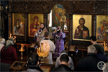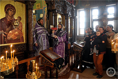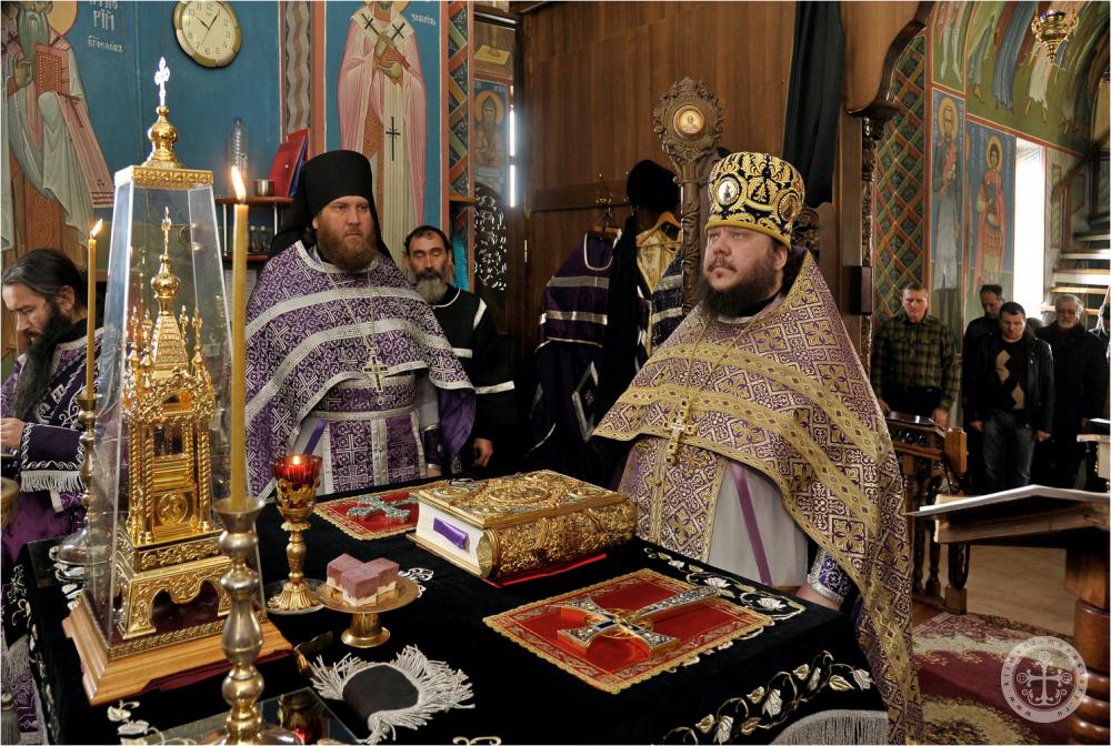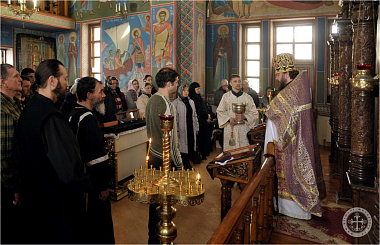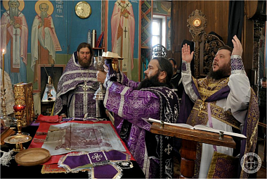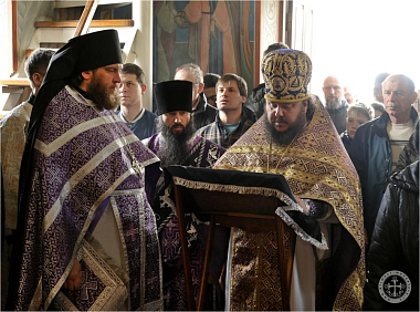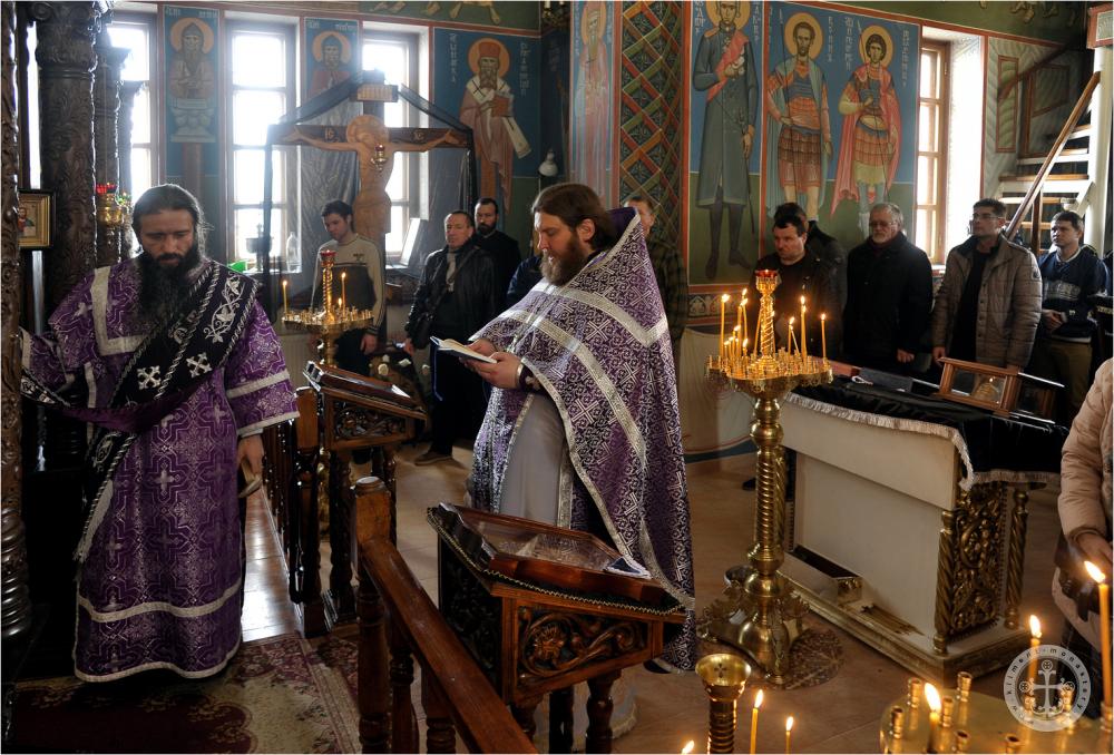 Отцу наместнику сослужил благочинный Фиолентовского монастыря иеромонах Арсений (Чечота).