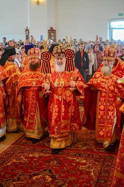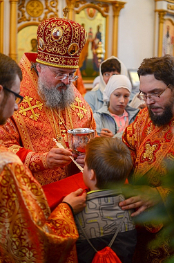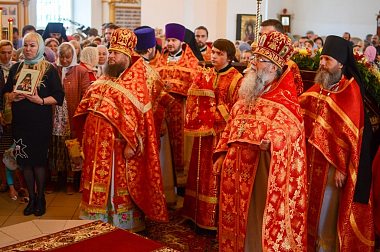 Церковные песнопения исполнил хор под управлением регента Евгения Пуцанкова.