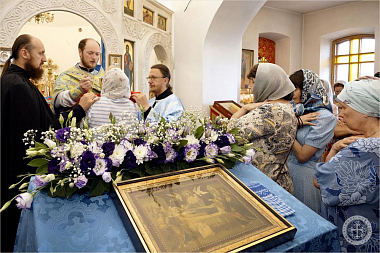 «Богородичная Пасха» собрала под сенью Троицкого храма древней обители множество богомольцев. Всенощное бдение и Божественную литургию возглавил иеромонах Иов (Герасимов).