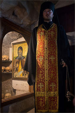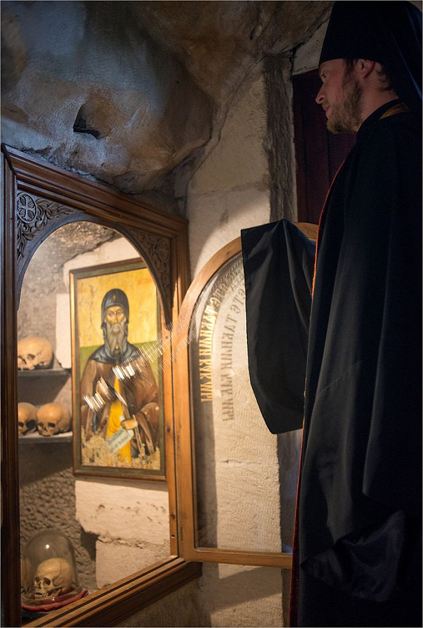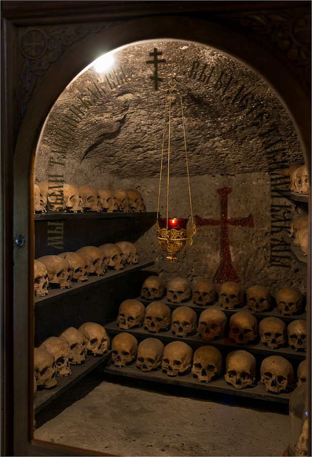 Ожесточенные кровопролитные бои во время героической обороны Севастополя унесли жизни множества защитников Родины. При восстановительных работах и планировке территории близ монастырских пещер в конце 90-х годов были обнаружены остатки захоронений воинов, а также братии монастыря. По благословению правящего архиерея все вместе они были помещены по древней традиции горных монастырей в остеофилакий – особую костницу, находящуюся в пещере при входе в храмы Монастырской скалы.