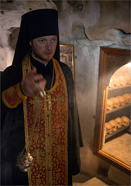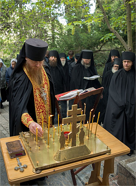 Божественную литургию в сей праздничный и памятный день совершил в главном пещерном Климентовском храме обители иеромонах Аристарх (Сащенко). Панихида была отслужена благочинным монастыря иеромонахом Авелем (Василенко), а заупокойная лития у костницы – иеромонахом Иовом (Герасимовым).