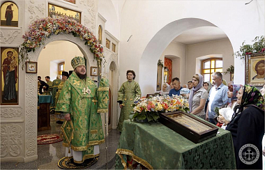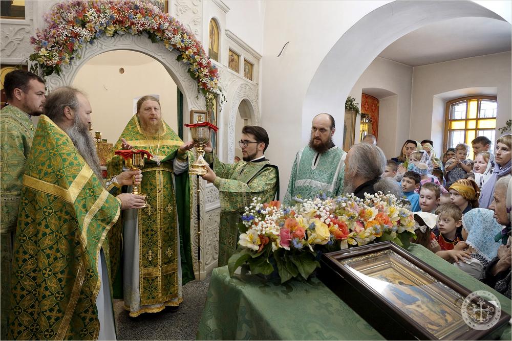 Его Преосвященству сослужили насельники монастыря в священном сане с благочинным обители иеромонахом Авелем (Василенко).