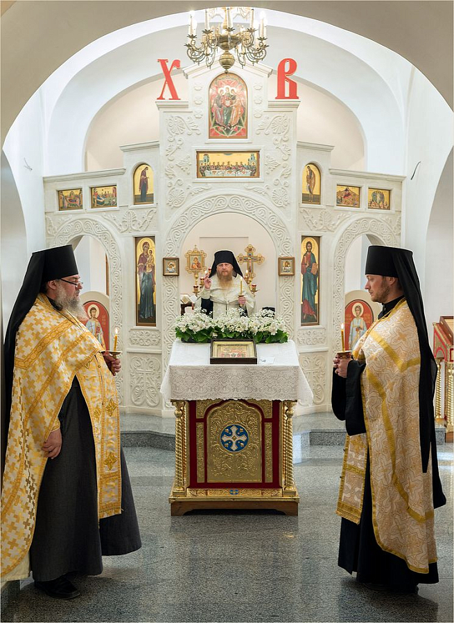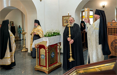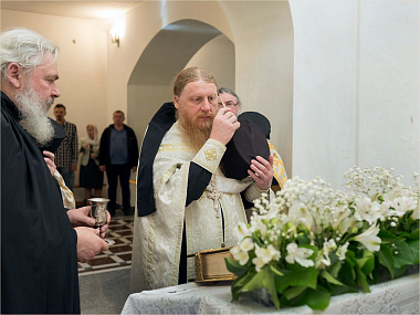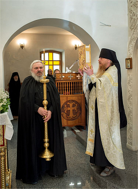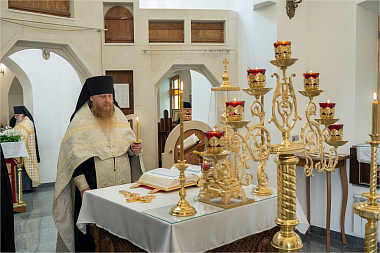 Всенощное бдение и праздничную Божественную литургию в Троицком храме Свято-Климентовского монастыря возглавил благочинный Инкерманской обители иеромонах Авель (Василенко).