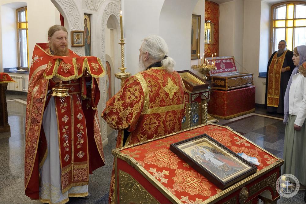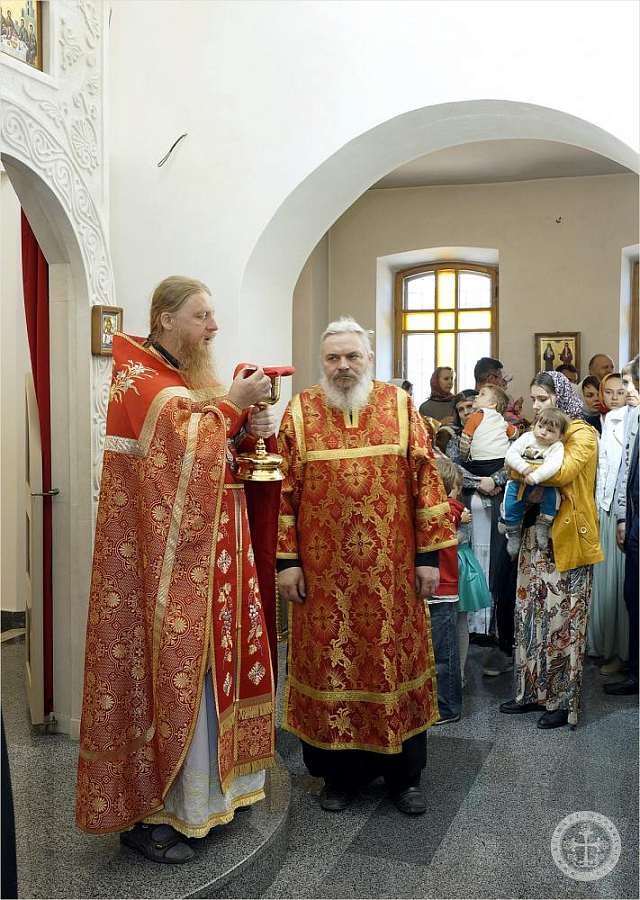 По окончании Литургии отец благочинный обратился к собравшимся со словом о святых просветителях славян Кирилле и Мефодии и поздравил тезоименитого в сей день Святейшего Патриарха Московского и всея Руси Кирилла.
