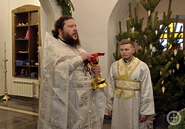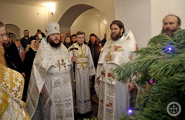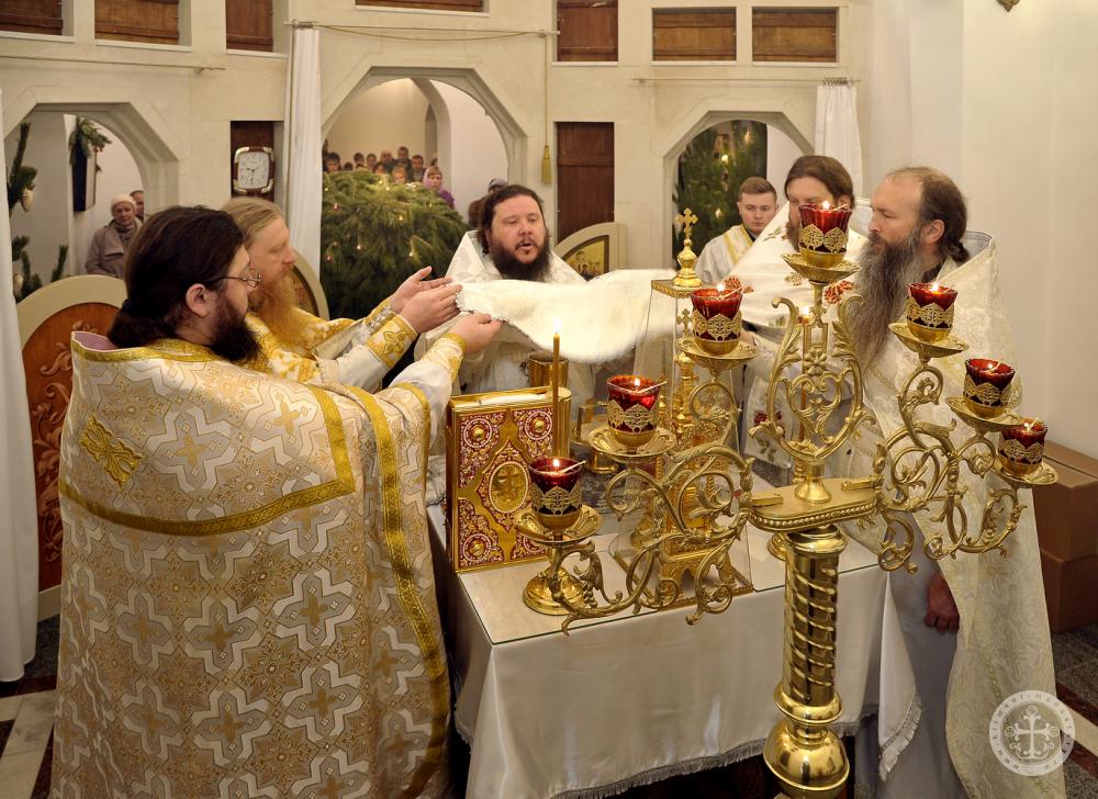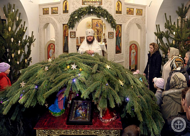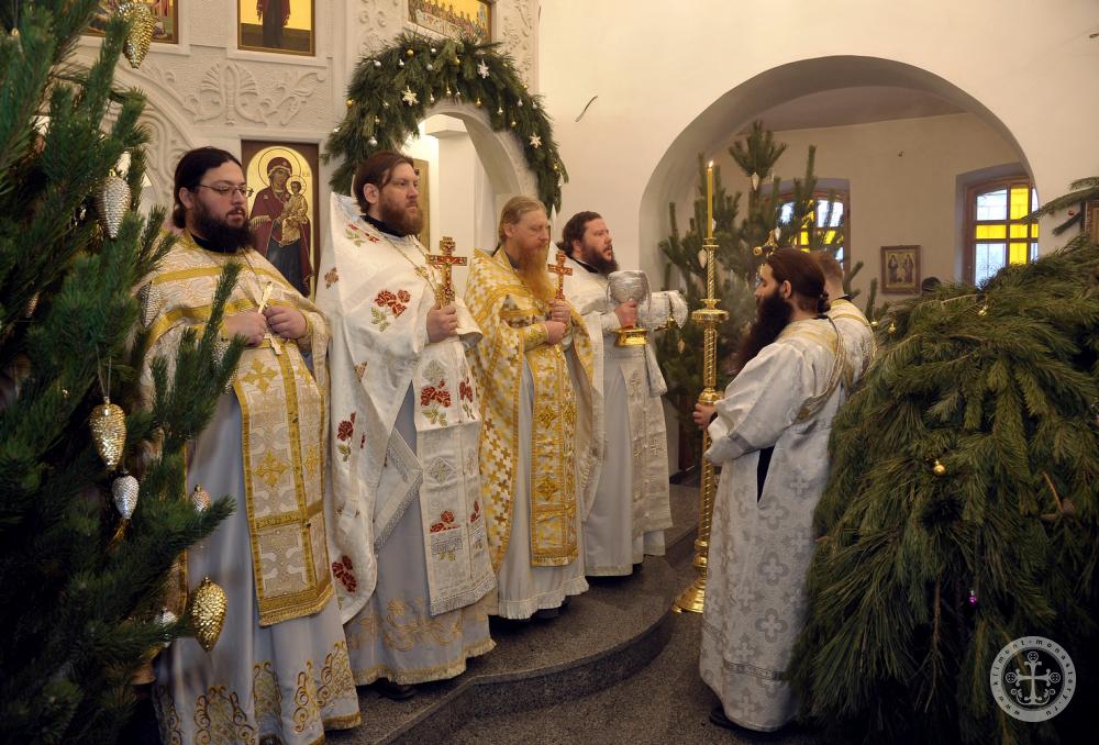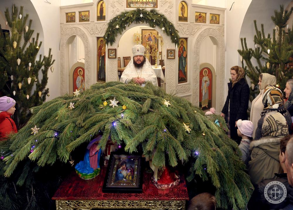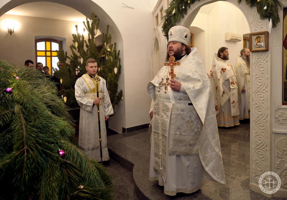 Украшенный к рождественским торжествам храм был полон прихожан и паломников.