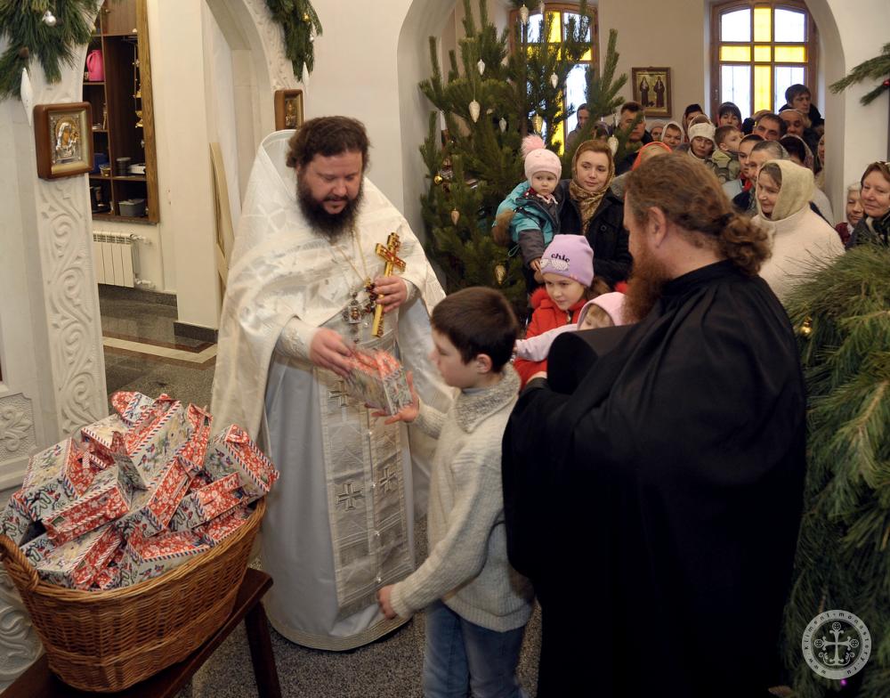 По окончании богослужения после целования креста отец наместник от лица инкерманской братии вручил всем маленьким прихожанам рождественские подарки.