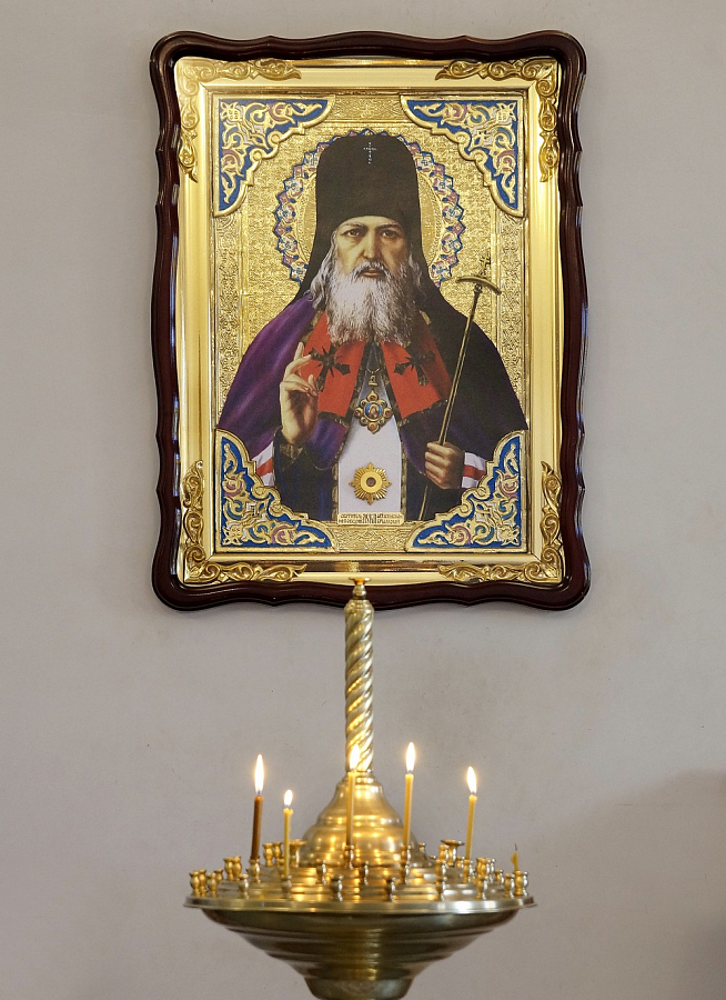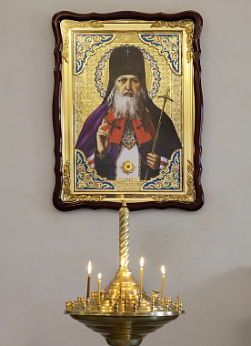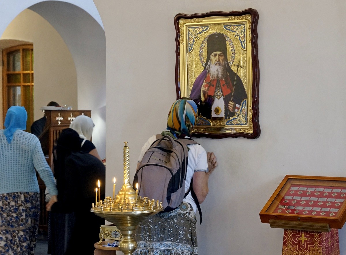 Свято-Троицкий храм монастыря в праздничный день был полон прихожан и паломников, пришедших почтить память Крымского святителя и помолиться у иконы с частицей святых и цельбоносных мощей врача и исповедника Луки.