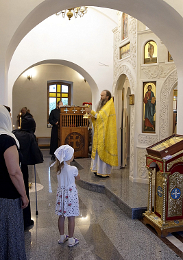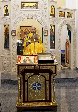 Всенощное бдение и Божественную литургию совершил насельник обители иеромонах Андрей (Данилов).