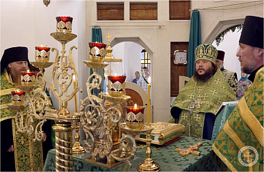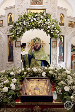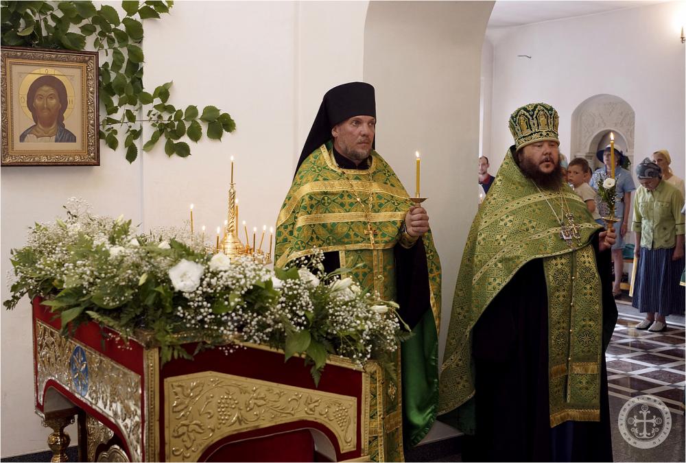 Празднично украшенный Троицкий храм в престольный праздник был полон богомольцев. Христианская Пятидесятница – Троица – заключает в себе двойное торжество – прославление Пресвятой Троицы и Пресвятаго Духа, видимым образом сошедшего на апостолов и запечатлевшего тем новый вечный завет Бога с людьми. Также воедино собранный ныне Духом Святым народ Божий молитвенно прославил Святую Троицу под сводами соборного храма Инкерманского монастыря.