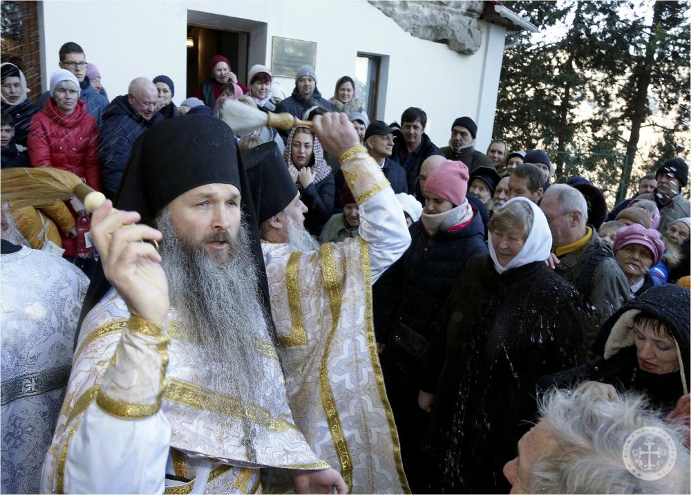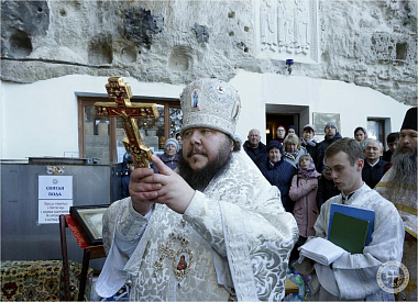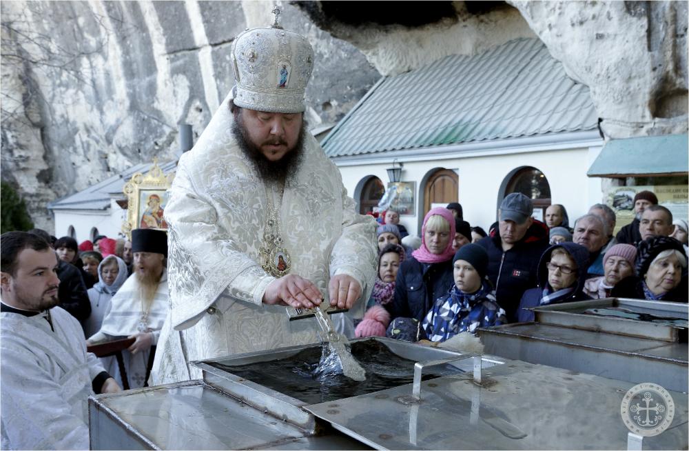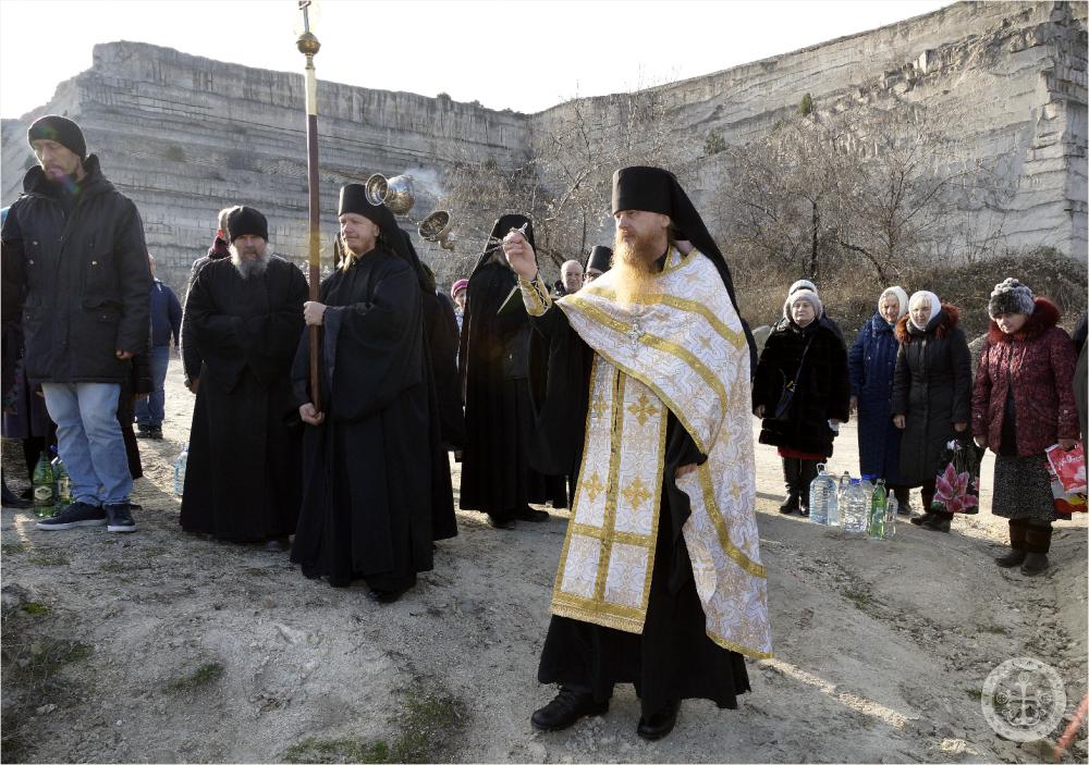 В навечерие Богоявления, Крещенский сочельник, по окончании богослужения в пещерном Климентовском храме были совершены крестный ход на иордань и чин великого освящения воды на Святом озере.