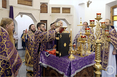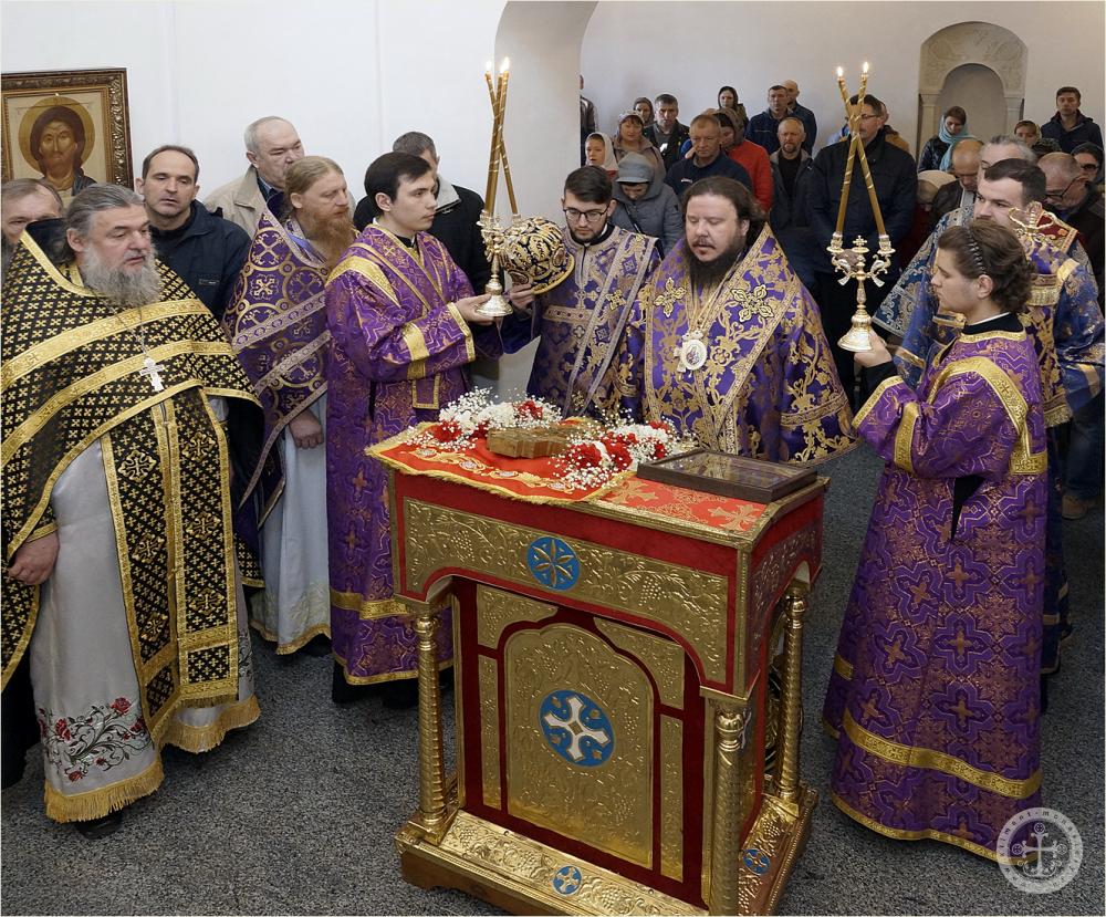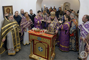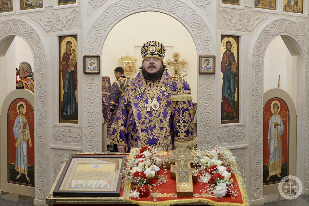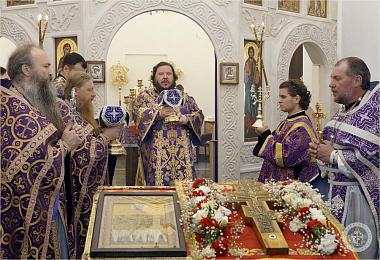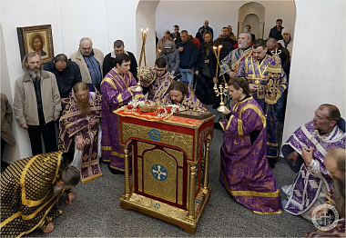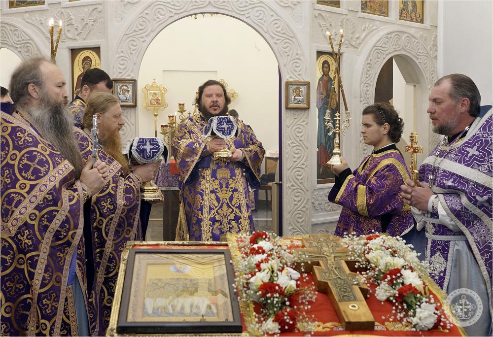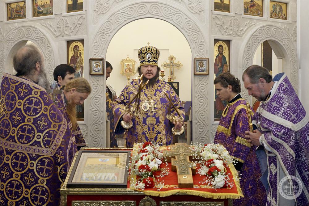 Храм был полон богомольцев, с верою и упованием пришедших поклониться Честному и Животворящему Древу Креста Спасителя нашего Иисуса Христа.