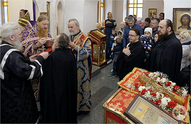 В Троицком соборном храме обители Его Преосвященству сослужили благочинный монастыря иеромонах Авель (Василенко) и священномонахи Иларион (Чистяков), Аристарх (Сащенко), Андрей (Данилов), а также протодиакон Георгий Горбуля.