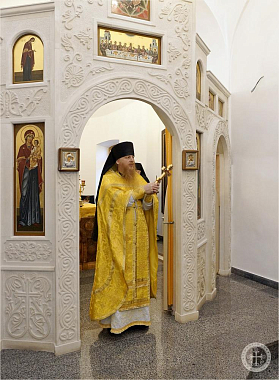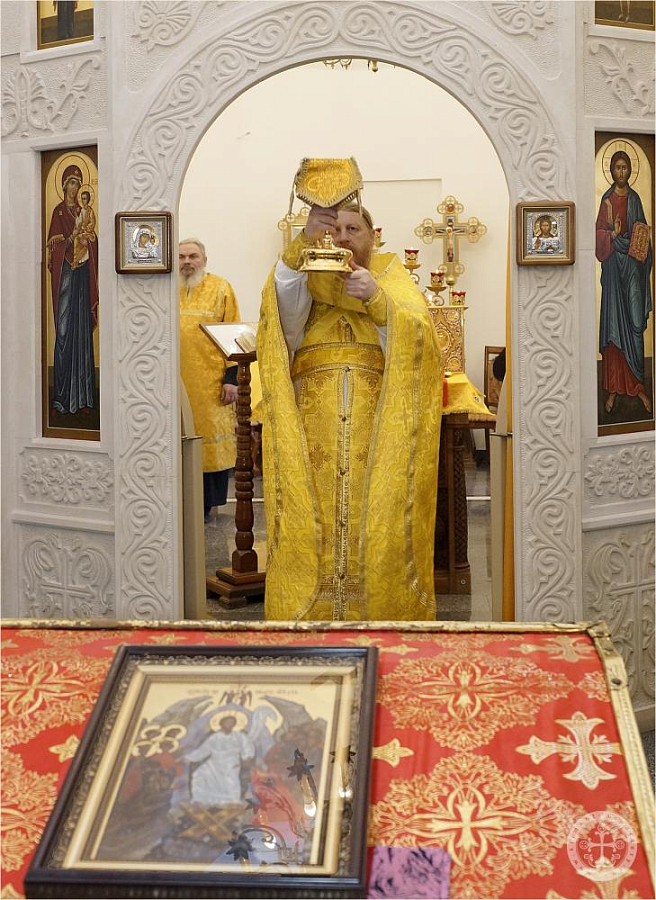 Богослужение возглавил благочинный монастыря иеромонах Авель (Василенко) в сослужении протодиакона Георгия Горбули.